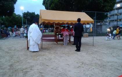 先週の9日(木)〜11日(金)の3日間で新佃公園にて佃地域の慰霊盆踊りがありました。