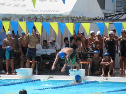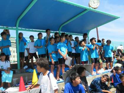 佃中学校の水泳部として団体で男女とも賞状が取れたことは、部員の全員のがんばった成果です。まだ、公式試合があります。今後の活躍に期待します。