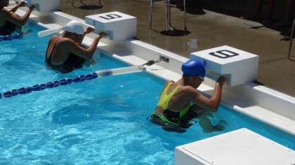 水泳部も1・4ブロック合同でブロック大会が新北野中学校で行われました。大変暑い日で、プールからの照り返しや多くの学校の生徒で大変だったことと思います。