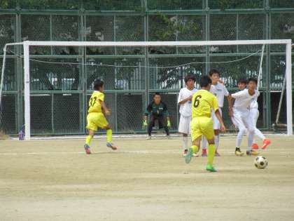 本校のサッカー部は現在大阪市でベスト16まで勝ち進んでいます。今までのゲームとは異なり、相手チームに攻められることもあり、ハラハラドキドキすることもありましたが、得点を重ねていき2−0で勝利を手に入れました。