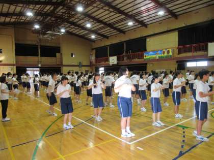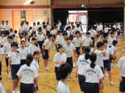 9月中旬。体育大会の取り組みにも熱が入りだしています。3年生は今週になってから3年生全員で体育館で朝の練習を始めています。