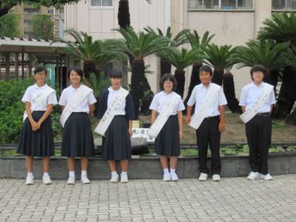 いよいよ次期の生徒会役員の立候補が締め切られ、本日より登校時に選挙活動として正門に次期役員候補の仲間があいさつを兼ね活動を始めました。