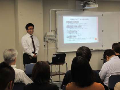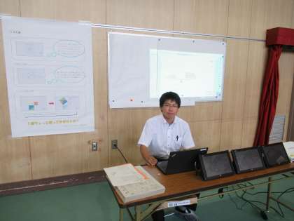 その中で、数学部では玉川先生がICTの授業での有効な使い方の紹介をするポスターセッション、特別活動部では鳥枝先生は西淀川区の生徒会交流会の報告をしました。