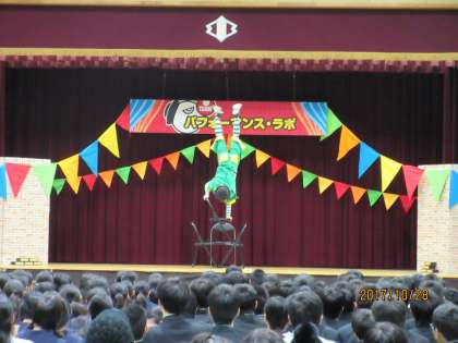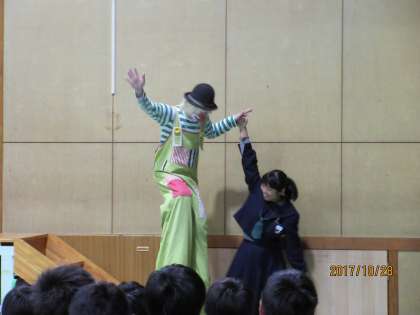 TEAM PERFORMANCE LAB「クラウンサーカス」に来ていただいてパフォーマンスを披露してもらいました。会場全体を巻き込み非日常空間で「楽しく愉快な」時間を提供してくれました。パントマイム・マジック・風船等がありました。