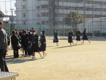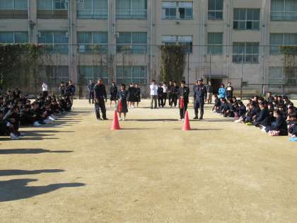 6時間目に火災による避難訓練をしました。運動場に集まるまでにいつもより少し時間がかかってしまい、今後の課題となりました。その後、2年生の学級委員が代表で水消火器で、消火器の使い方の実践をしました。
