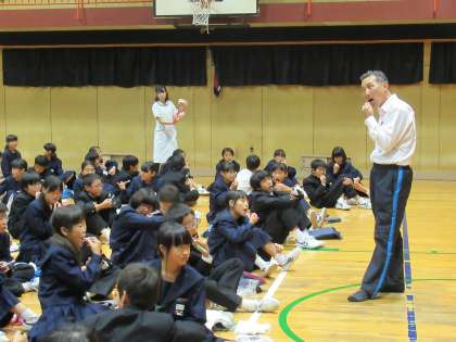 本日の午後から学校歯科医の片岡先生と門真市にあるにしさんそう歯科クリニックから歯科衛生士と管理栄養士の皆様に来校いただき「歯と口の健康教室」を開催しました。