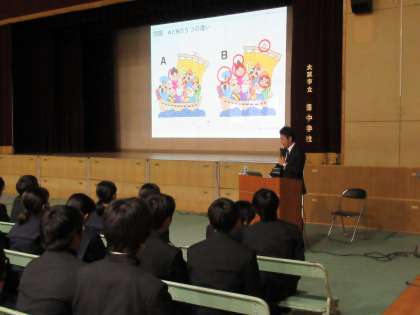 本日は、高等学校からの紹介で株式会社グローバルキャリアの代表取締役の 的場 亮 先生から3年生と保護者対象に講演会を行いました。