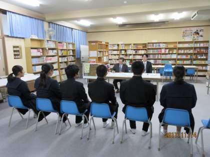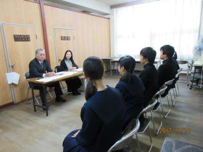 今日は、3年生対象の「模擬面接」を私立高校の先生方に来ていただき実施しました。「緊張から声が小さい」「お辞儀がぎこちない」「質問されたことに考えがまとまらず答えられない」など貴重な学習機会となりました。今日の模擬面接を帰ってからノートに記録しまとめておきましょう。