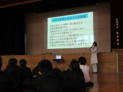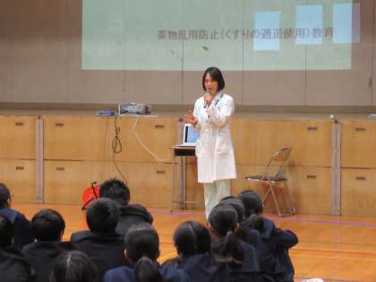 昨日、2年生は本校の薬剤師の宇都宮先生に来ていただき、薬物乱用防止教室を行いました。薬の正しい使い方のお話や薬物乱用防止のビデオを見て学習をしました。
