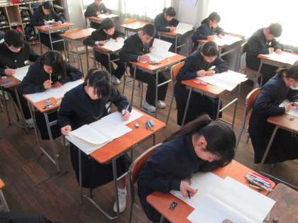 本日は、1年生は国・数・英のチャレンジテストと社会科テスト、2年生は国・社・数・理・英のチャレンジテスト、3年生は国・社の実力テストを実施しました。