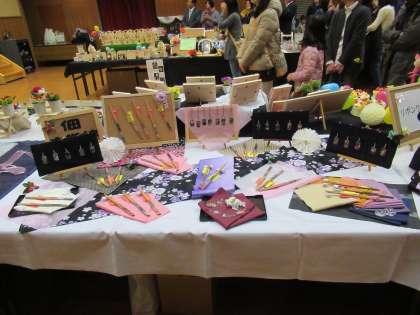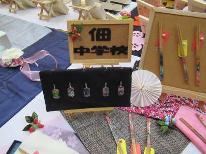 1月27日の土曜日にエルモ西淀川で区PTA協議会文化祭が行われました。本校は、社会見学時に作成したお箸とアクセサリーを展示しました。