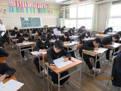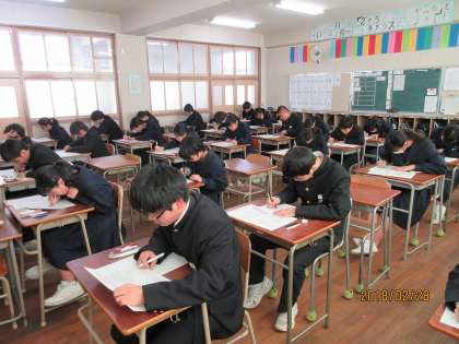 ☆1・2年 学年末テスト 1日目( 1限目理科、2限目国語、3限目技・家 )