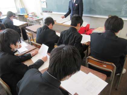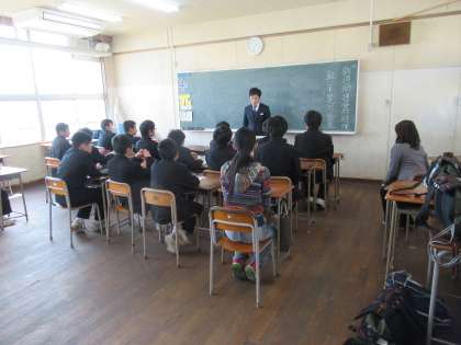 もともとこの講話を希望していた生徒がテスト後に集まり聞きました。子どもたちは一生懸命聞いていました。