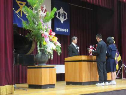在校生送辞・卒業生答辞・卒業生の歌「絆」の様子です。