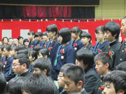 本日、澄み切った晴天のもと「第37回卒業証書授与式」を挙行いたしました。厳粛な雰囲気の中、校長先生から卒業生一人一人に卒業証書が手渡されました。在校生送辞、卒業生答辞の後、卒業生が「絆」を合唱、そして全員で「蛍の光」を斉唱し、卒業生を送り出しました。