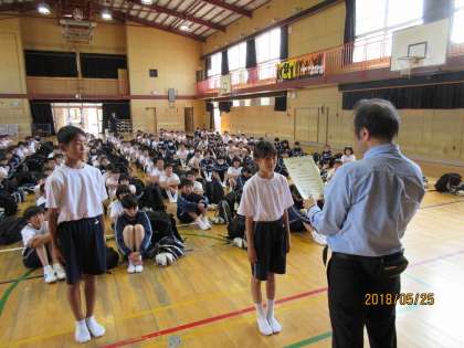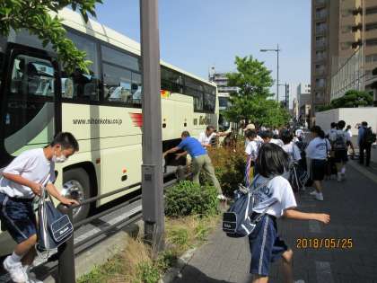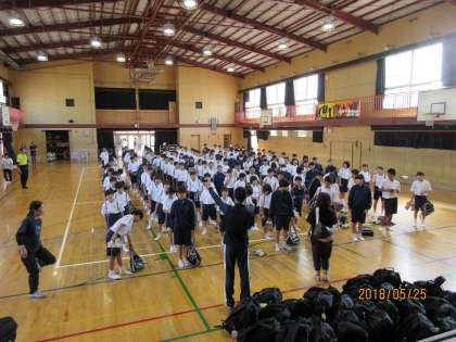 1年生が一泊移住から帰ってきました。みんな元気な顔でバスから降りてきました。家でゆっくりと休んでください。