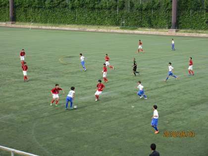 6月3日(日)鶴見球技場にてサッカー部が市総体ベスト4をかけて試合を行いました。前半カウンターから1点を先制し終了。後半開始早々、同点に追いつかれその後、勝ち越し点を許しました。最後まで、粘り強く戦ってくれましたが敗戦となりました。選手のみなさん。素晴らしい試合をありがとう。また、保護者の方々の応援ありがとうございました。