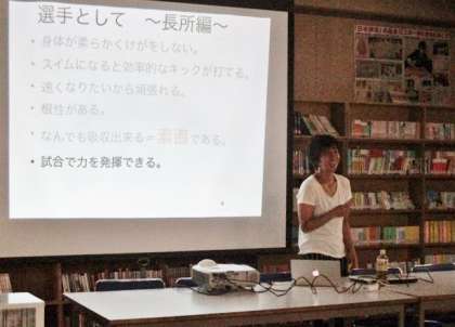 本日、トップアスリートの夢・授業の講師として、元水泳のメダリストの中西悠子さんにお越しいただきました。前半は、ご自身の経験に基づいて、ご講演いただき、後半は、実際に水泳の指導をしていただきました。佃中学校水泳部にとって、とても良い経験をさせていただきました。中西悠子さん、ありがとうございました。