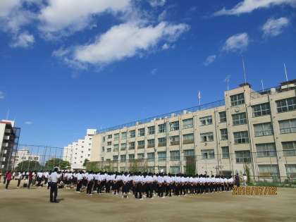 今日全校集会がありました。校長先生から、この40年〜50年の経済発展や科学技術のお話がありました。科学の発達により、高度経済成長が50年前に成されている。しかしながら、産業災害・交通災害などの新しい災害が生まれ7月1日は国民安全の日となっています。先日の大阪北部の地震のことも含め、自らの安全に関して再認識してほしいとの主旨です。また、6月30日(土)北海道にてホリエモンこと堀江さんたち民間人によるロケット発射(結果:失敗)の話に生徒たちは、暑さを忘れ聞いていました。
