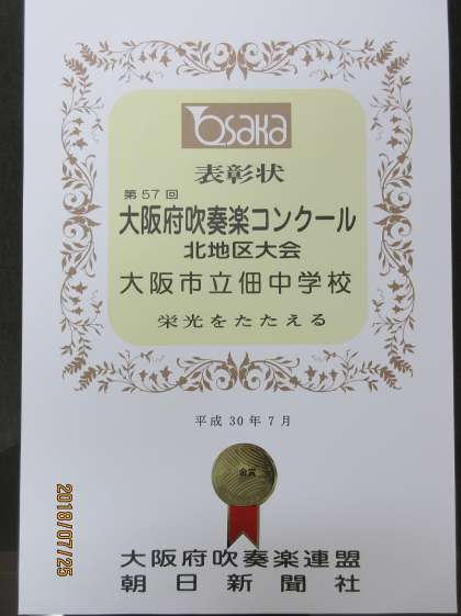 吹奏楽コンクール 北地区大会『金賞 GOLD!!』授賞