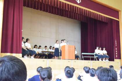 今日の6時間目に生徒会役員選挙が行われました。最初に選挙管理委員会より、諸注意と立候補者の紹介が行われました。立会い演説会では、会長・副会長・書記・執行委員の各候補が順に公約をしっかりと発表してくれていました。演説後、教室に帰り信任投票をしました。