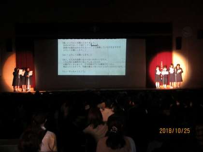 (1)2年生学年合唱 (2)文芸部スライド芝居