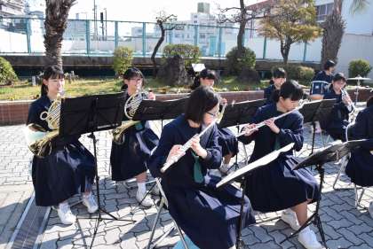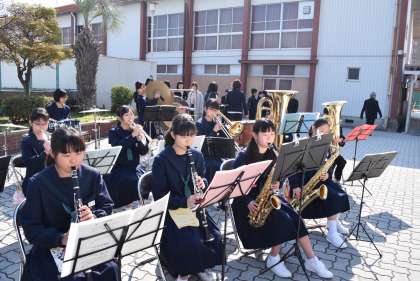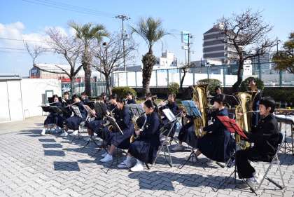 入学式の前に毎年恒例の吹奏楽部の演奏がありました。新入生のみなさんが楽しい学校生活を送れるように学園天国のメロディーが奏でられました。