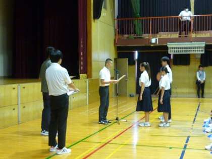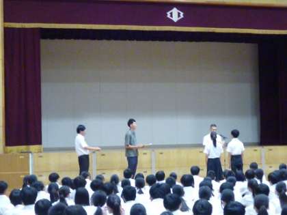 夏休み中に優秀な成績を残した部活動や個人の表彰を行いました。