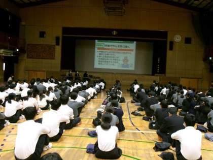 2年生では、千船病院から医師と看護師の先生を講師にお呼びして6時間目にがん教育を行いました。