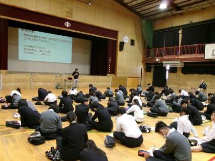 2年生では本日、体育館で平和学習を行いました。