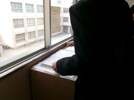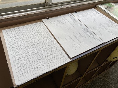 テスト1週間前になると、廊下に自主学習用のプリントが置かれます。