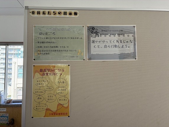 2年生のフロアには「委員長たちの掲示板」があります。