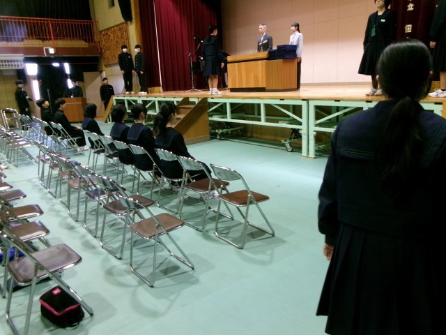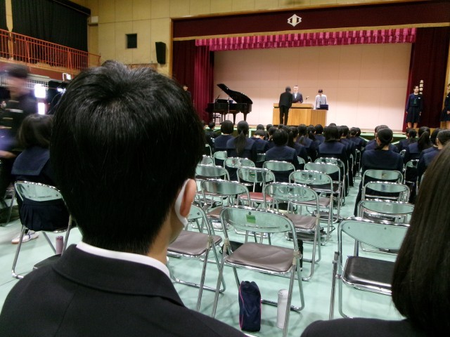 参列する1・2年生は、来年の自分たちの姿を思い浮かべて見ています。