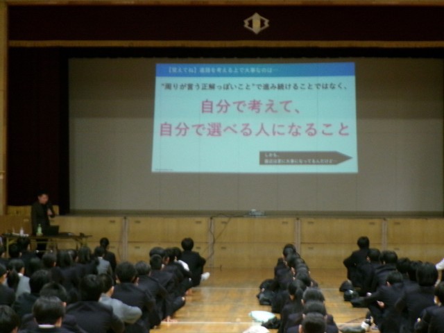 来年度の進路選択では、目に見える「条件」だけでなく自分自身を知った上で選択してほしいとお話ししていただきました。