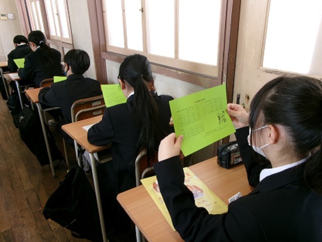 部活動について連絡をうけて、早速体験先を記入したり、友達と「どこに行く?」と相談しあっていました。