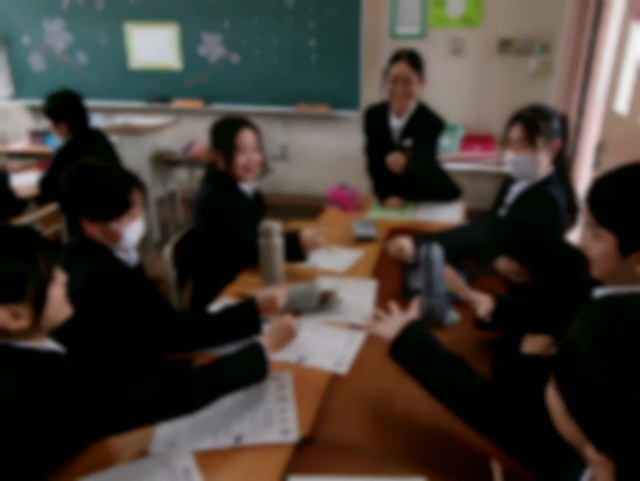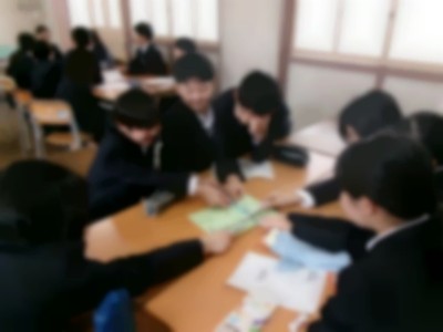 教室に戻って、自己紹介カードを作成したり、初めての班活動を行いました。