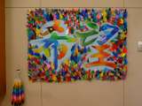 本日からは、学芸発表会での展示の様子をお知らせします。 1年生の共同作品です。大...