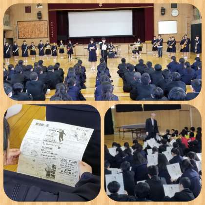 6限、1年生対象に上級生等から各部の紹介がありました。生徒会役員が進行役になり、各部代表が工夫を凝らし活動の様子を伝えます。