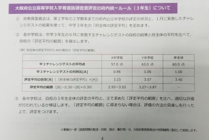 加えて、調査結果を活用し、大阪府公立高等学校入学者選抜における評定の公平性の担保に資する資料を作成し、市町村教育委員会及び学校に提供する。