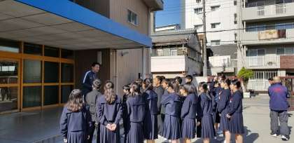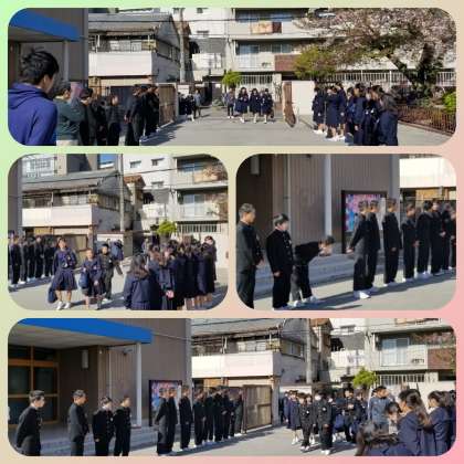 爽やかな朝、校門では生活委員が『あいさつ運動』を行っています。