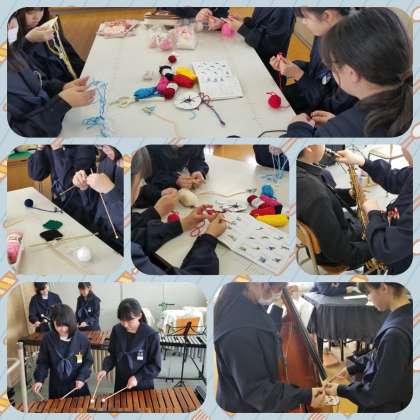 家庭科部は裁縫を始め、編み物などを行っていました。上級生が1年生に手ほどきをします。上級生の経験を下級生に伝える。当たり前のことですが、いい光景ですね。