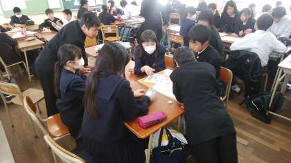 グループで一人ひとりの意見を出しながら、「合意」を学んでいます。