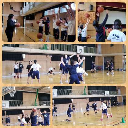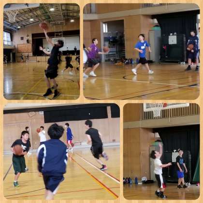 午後の後半は男女バスケットボール部が舞台側に女子、入口側な男子が入り活動します。