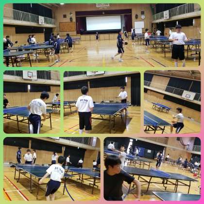 体育館では卓球部がフロアーいっぱいに台を並べて練習に打ち込んでいました。