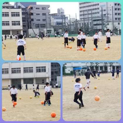 サッカー部が大阪市ベスト16をめざし、みんな気合を入れ練習に打ち込んでいます。