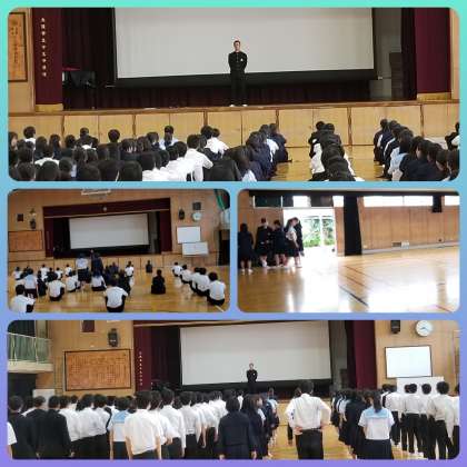 体育館では3年生が集会を行っていました。8時20分にはほぼ集合完了。時間に余裕をもった行動大切ですね。