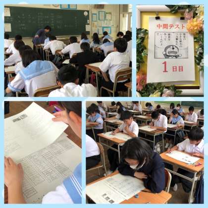 本日から2日間の中間テストが始まりました。1日目は国語・社会・数学の3科目です。各自、この4月からの学習の成果を発揮すべく、問題に真剣に向き合います。それぞれの目標をもって、明日の2日目にも臨んでほしいと思います。