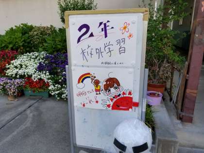 明日は2年生の校外学習。てるてる坊主に願いを託していたのでした。