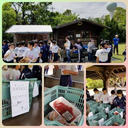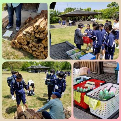 施設で事前に薪や食器類、持ち込めない食材などが準備されています。各学級、それぞれ役割がありその責任を果たします。