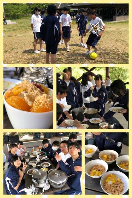 食事も本当に大きな失敗なく、どの班もおいしくできました。どこのカフェ?と思うような、おしゃれなデザートもあれば、焼きマシュマロや焼きリンゴ、じゃがバターなど、野外炊飯ならではのメニューもあり、みんなの気合の入りようが伝わってきました。